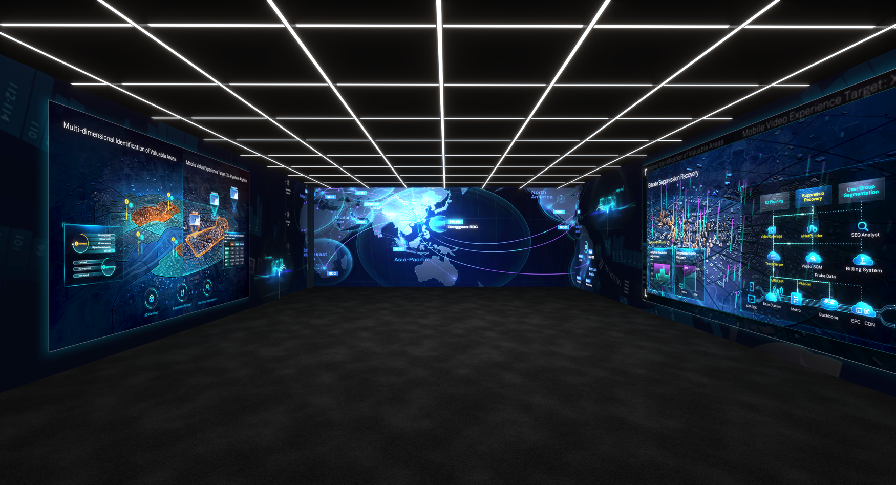 折幕投影可以營造裸眼3d的效果,讓觀看者看到屏幕折射投影出來的東西更加抽象,帶給觀眾身臨其境的體驗效果。同時還能更精準的顯示出原始數據的縱橫關系,因此非常適合專業領域的數據分析。
