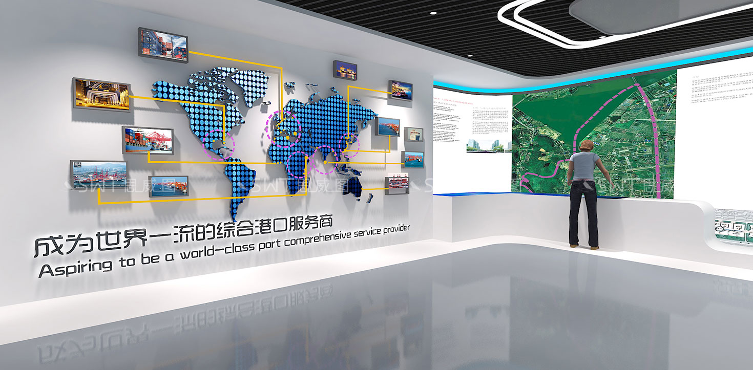 為了更好地展示企業的品牌形象和實力,招商局港口企業特別委托思威圖數字執行整體設計施工了企業展廳案例。這個展廳從“品牌、產品、文化、科技”四個方向入手,通過互動多媒體展示形式,生動形象地呈現了招商局在行業內的領先地位和卓越成就。觀眾在參觀過程中,可以親身感受到企業的品牌文化和發展歷程,深刻體驗到招商局的創新精神和務實作風。
