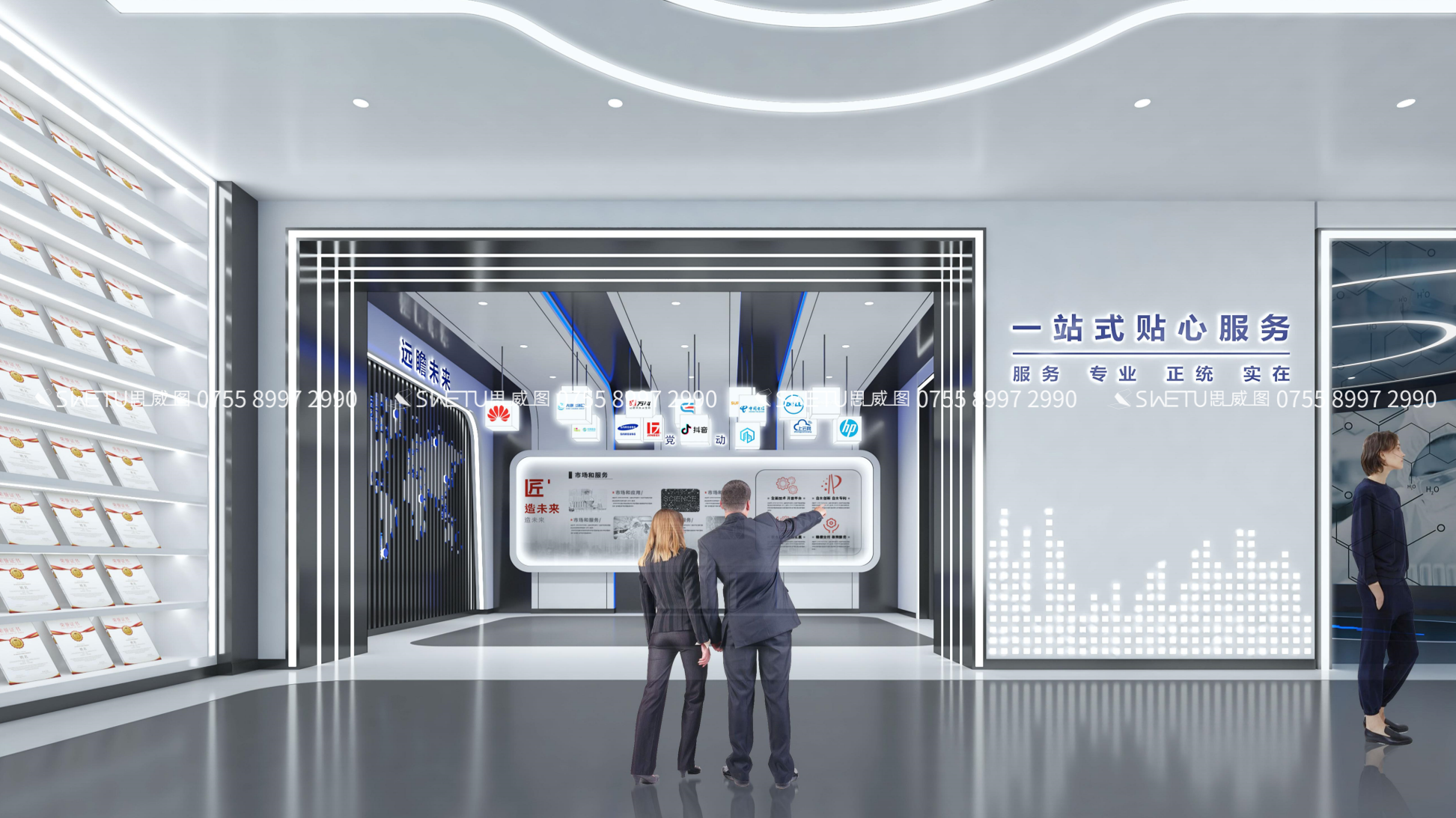 漢維(股份)企業科技展廳位于東莞橋頭,占地250平方米,是一座科技與藝術完美融合的展示空間。思威圖數字作為設計團隊,深度挖掘漢維企業的發展歷程與核心理念,通過精心策劃與設計,將展廳打造成為業內一流的展示標桿。