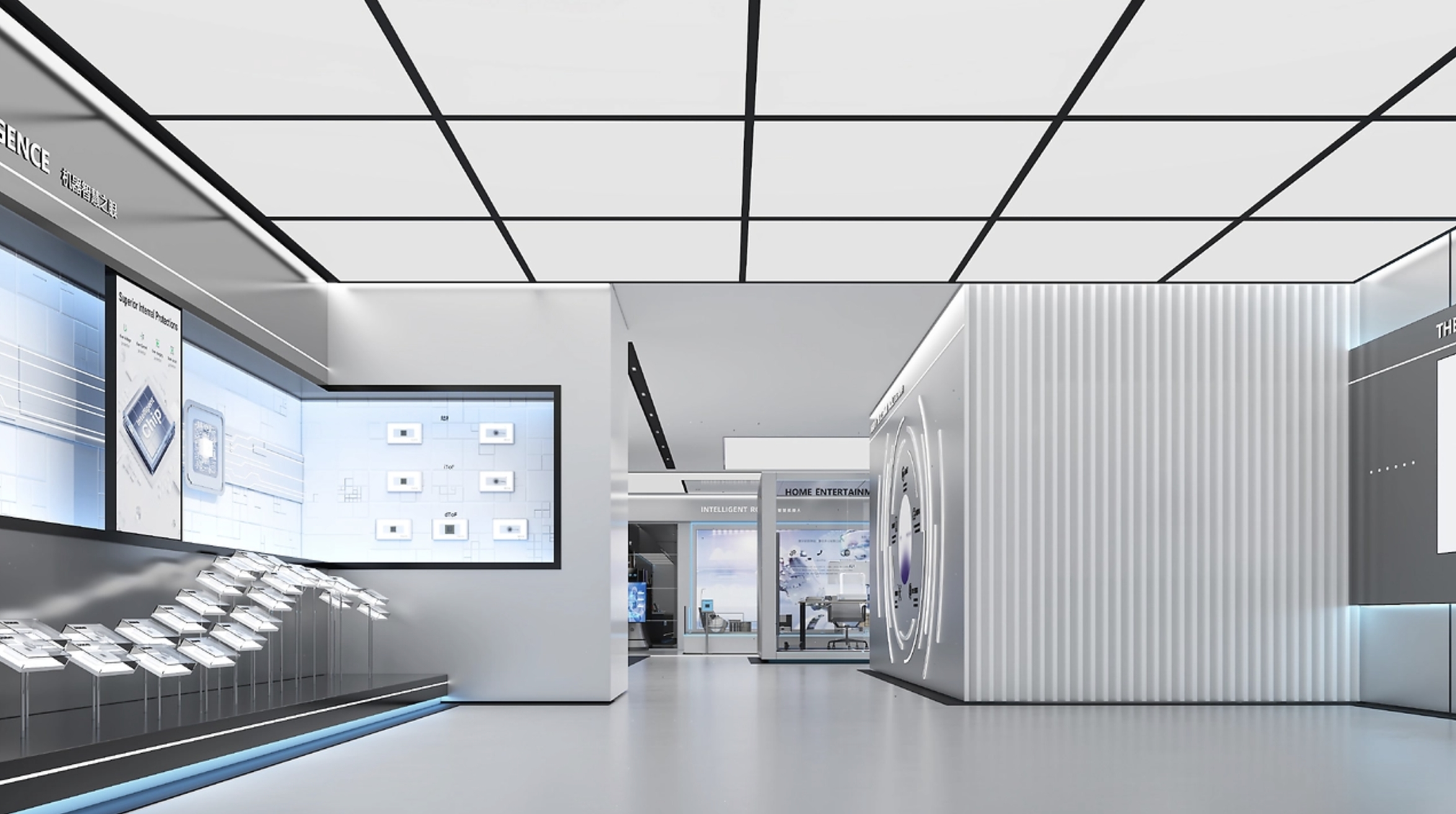 參照上海某跨國藥企案例,通過"分子結構"造型的展墻分隔功能區,既體現專業性又保證參觀流線連貫性。
