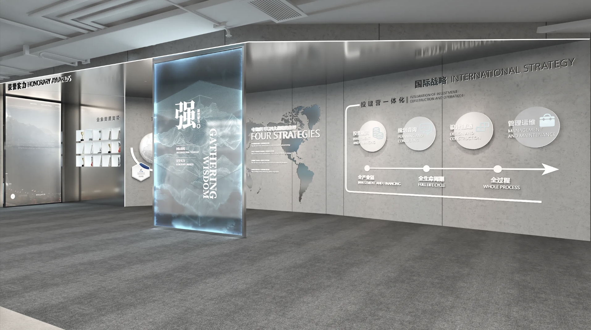 觸摸屏互動地圖:安裝一個大型觸摸屏,展示企業的全球分布或重要地點。觀眾可以通過觸摸屏幕上的點來查看特定位置的詳細信息,如分公司介紹、項目案例等。這種裝置結合了現代觸摸屏技術和地理信息,提供了直觀且有趣的互動體驗。
