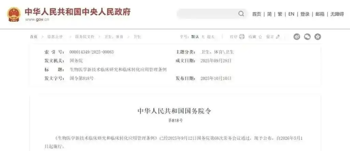國務院第818號令公布的《生物醫學新技術臨床研究和臨床轉化應用管理條例》(以下簡稱《條例》),為CAR-T、干細胞等熱門生物醫學技術劃定了明確的“游戲規則”。從研究備案到臨床應用,從風險防控到醫保銜接,每一條規定都直接關系著患者的權益與行業的走向。今天我們對照條例原文,拆解這些新規背后的民生意義。