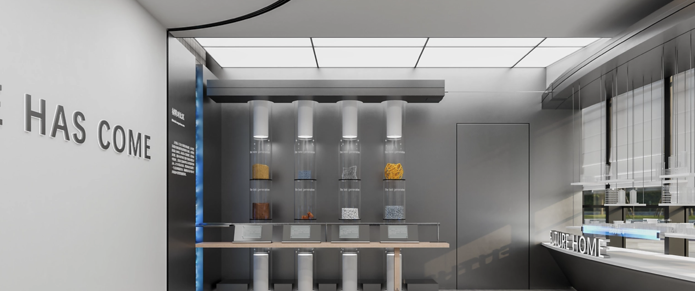 圓形茶歇區(qū)打破了觀展與體驗的界限。玫瑰柴胡茶旁擺放著疏肝理氣穴位模型,蓮子心茶搭配心率變異性監(jiān)測儀,藥食同源的理念在此落地生根。當超過三人落座,天花板會投射森林光影并播放432Hz療愈音階,形成聲光味的協(xié)同刺激。精妙的是漢白玉茶臺——放置巖茶顯示《茶經(jīng)》片段,放置NMN飲品則投影分子通路圖,東方智慧與現(xiàn)代科技在此完成跨時空對話。